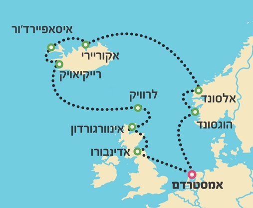 טיסה ישירה לאמסטרדם ביום השייט וחזרה ביום סיום השייט